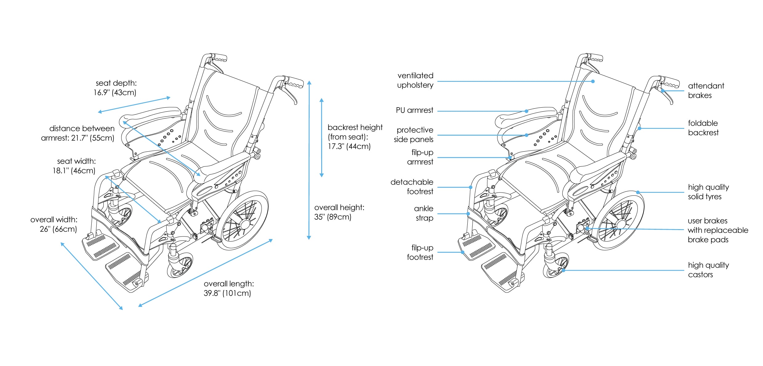 A foldable backrest enables the wheelchair to become more compact, facilitating convenient transportation, particularly when travelling by car or public transportation. This can make it easier for the caregiver or the user to participate in daily activities and travel to different locations.