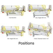 bed provides all the required positions, including CPR, Trendelenburg, Reverse Trend. To decrease the risk of patient falls or positioning of the bed without nursing staff supervision, the attendant control panel is equipped with nurse lock buttons. As the ACP has IP66 rating, it is resistant against dust and water.
