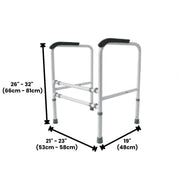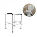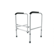 The lightweight toilet frame is a free-standing model that can be positioned around the toilet bowl to assist the user in standing.