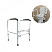 Adjustable toilet safety frames for the elderly, seniors, and those with disabilities, suitable for all toilet types.