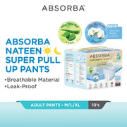 Absorba Nateen Adult Pants are premium Belgium-quality incontinent pull-up pants that offer multi-functional features and high absorbency performance.