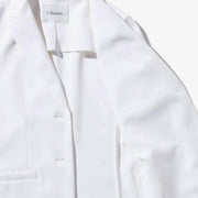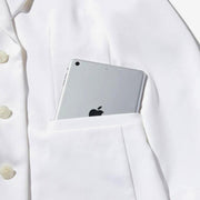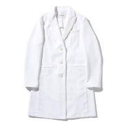 While the silhouette is sleek and slim, the women's version is designed with an A-line shape that gently flares out toward the hem. The peaked lapels at the chest express a dignified look, but they are rounded to prevent them from becoming too formal. At the same time, they also give a soft impression. A 7.5-inch tablet can be stored in the pocket, as with the men's version.