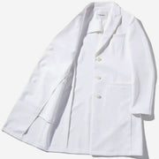 The lab coats are lightweight, highly stretchable, water-absorbent, and quick-drying. They are also convenient and can be worn immediately after washing and drying without ironing. Our developed initial materials also allow us to obtain a clean look without extra effort.