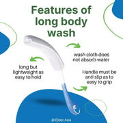 Having a hard time reaching the back of your body when you shower? Do you have difficulty moving your shoulders and trying to reach the back of your body? Stress no more- Introducing the Etac Beauty body washer which is designed to make it easy to reach and wash and massage your body with ease. The ergonomic design allows for a secure grip and a good reach, preventing any strain on your arms, shoulders, hands, and back. The washcloth scrubs your body without absorbing unnecessary water, is interchangeable and can be machine washed at 140 degrees (F). So lightweight and balanced even when wet. The oval-shaped handle has a non-slip surface to ensure a secure grip. Great to take with you when you are travelling and they are made from corrosion-free materials.