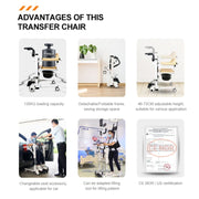 This multipurpose transfer chair is designed for patients and the elderly with mobility difficulty. Ideal tool for families, medical institutions nursing homes etc. Assisting the mobility-impaired in moving from wheelchair to sofa, bed, bathroom and other places so that they can wash, shower and treat on their own.