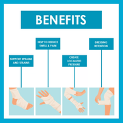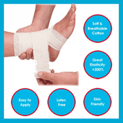 Used as a gentle support to treat sprains and strains, and help to reduce swell and pain. It can also be used for dressing retention