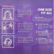 2. Hold the Eye Patch in place while positioning the strap over the head. Adjust the strap over the head. Adjust the strap as needed for a secure comfortable fit.