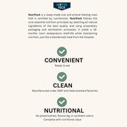 NutriPack is crafted based on the core nutrition principles, using only premium natural ingredients carefully selected for quality. With proprietary packaging and steriisation processes, it yields an impressive 18-month shelf-life at room temperature while preserving the full nutritional value- just like a freshly blended meal.