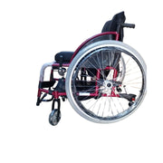 This aluminium foldable leisure- sports wheelchair can help you live the active lifestyle that you love. These chairs are often made of ultra-light materials and come with removable seats and back cushions. The front castors are bigger allowing for better momentum and less effort needed in maneuvering. It comes with an improved footplate and the seat which has a back cushion and is removable is better contoured for a better fit. The quick release rear wheel with pneumatic tyre, is also foldable.