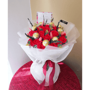 - Chocolatey- Soap roses and preserved lavender blooms that last forever. This bouquet encapsulates a sweet demeanor that is guaranteed to wow your recipient with a sweet vanilla scent and delicious Ferrero chocolates.