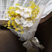 - Goddess - Elegance in a bouquet. Perfect for Orchid lovers out there. Fresh, clean & luxurious. Featuring 2 white Phalaenopsis orchids & yellow dancing ladies.
