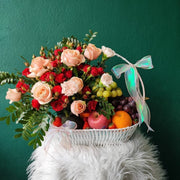2. Rosey Fruit Basket-The perfect flower & fruit basket to send your well wishes & care. Loaded with premium fruits and exquisite roses & carnations.