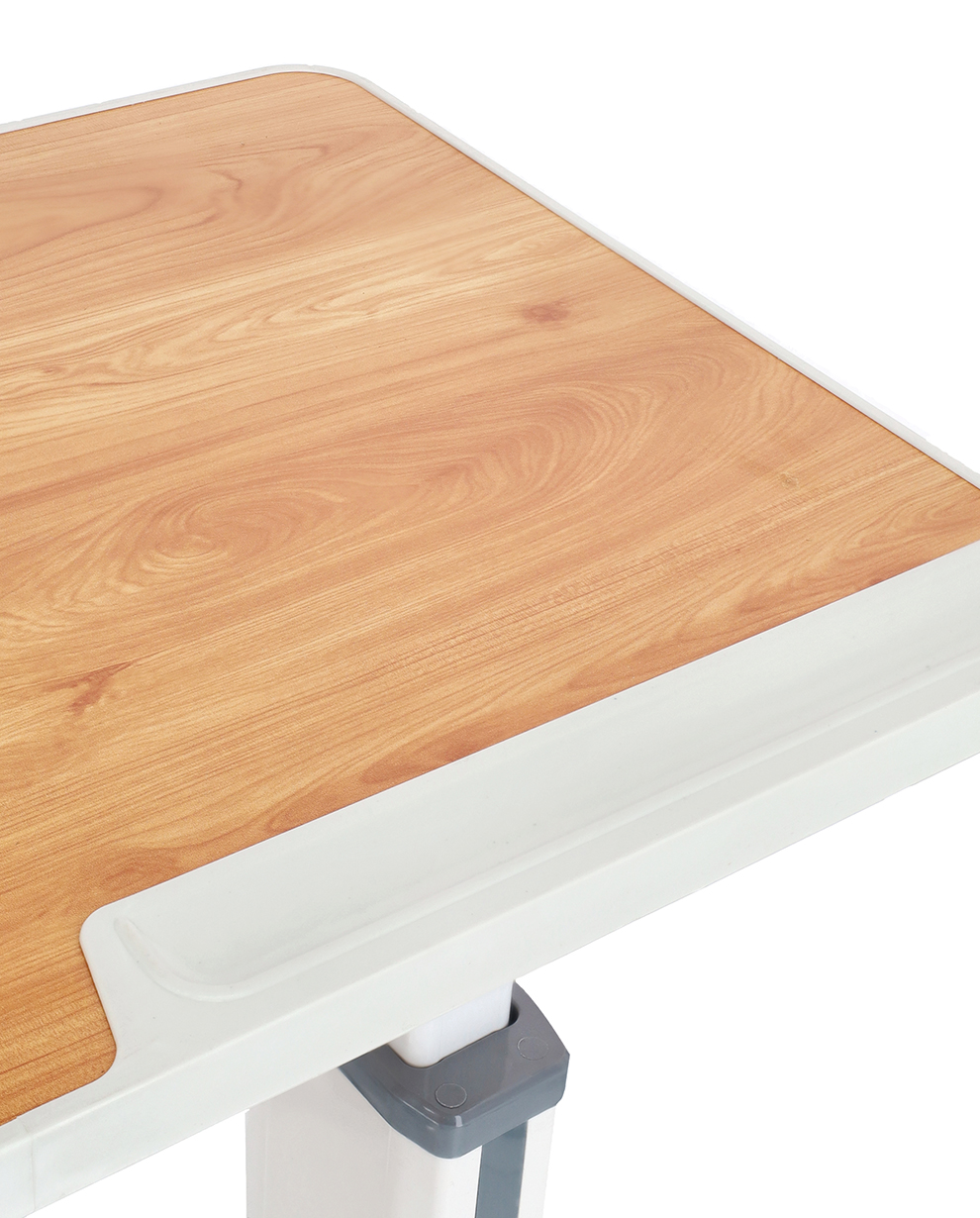 The Overbed Table D300 provides a convenient work surface for patients, enabling them to comfortably perform various daily tasks while seated in bed or a wheelchair.
