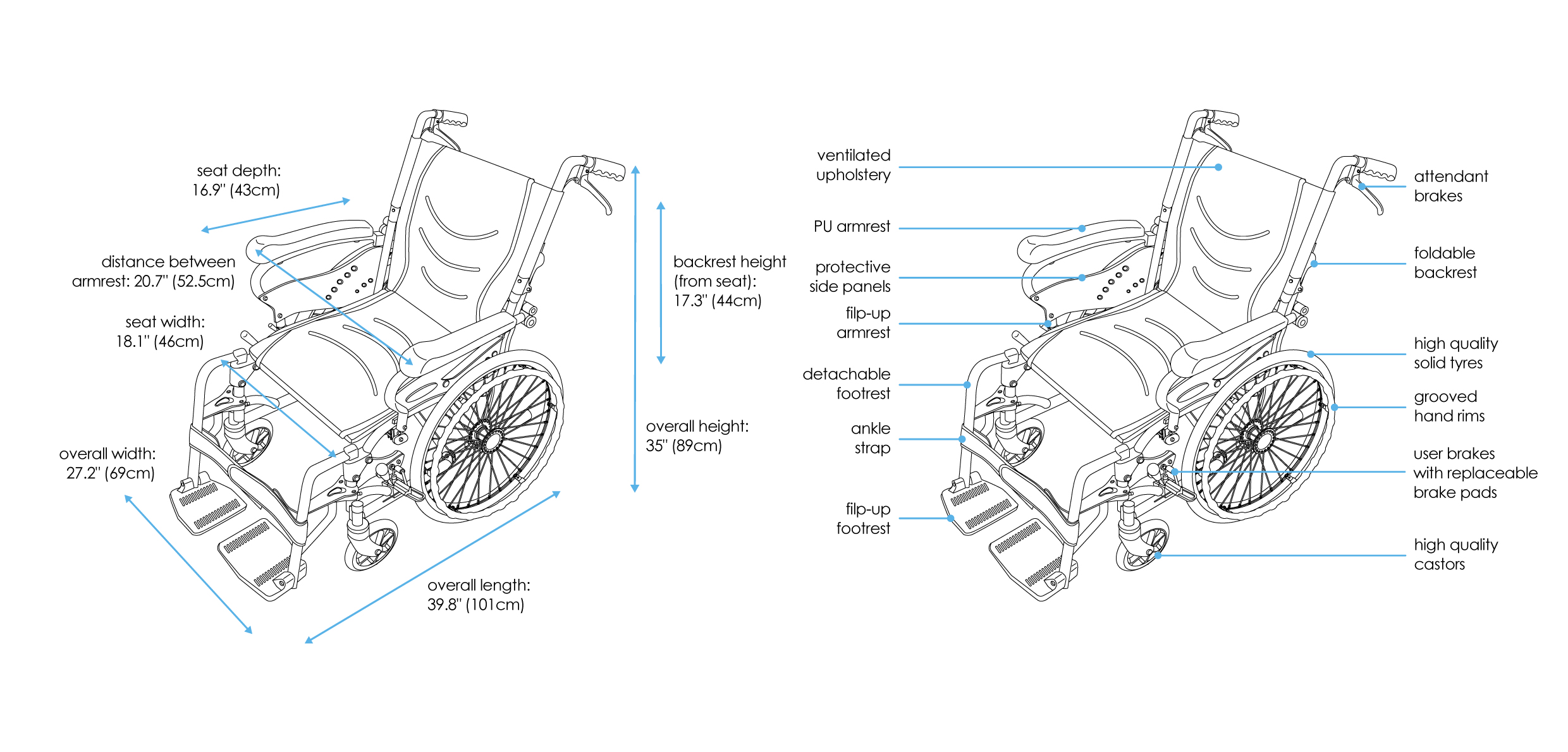 A foldable backrest enables the wheelchair to become more compact, facilitating convenient transportation, particularly when travelling by car or public transportation. This can make it easier for the caregiver or the user to participate in daily activities and travel to different locations.