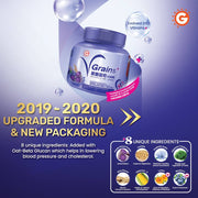 VGrains is a plant-based 18-grain purple sweet potato blueberry drink. It is now an enhanced formula with three times higher Lutein, added Palm Tocotrienol, and nutrients for eye and brain health. It has also been upgraded with the proprietary blend MindVPro: Cordyceps Militaris, Palm Tocotrienol, and Tiger Milk Mushroom.