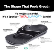 这款凉鞋是您双脚的超级英雄。这种款式的鞋跟高度提高了 +5 毫米,可提供增强的鞋跟缓冲和脚底支撑,同时具有与我们所有鞋类相同的 Total Support® Contour。经典的鞋带采用合成 PU 材质,但现在采用合成网眼衬里,有助于吸走水分并保持双脚清爽。与所有 Spenco® 鞋类一样,Total Support® 鞋床提供无与伦比的舒适度和支撑力。