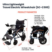 Ultra Lightweight Travel Electric Wheelchair (SC-C500) with Nursing Rear Controller & User Joystick Controller | SOWELL
