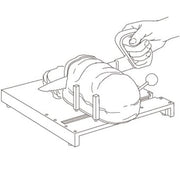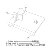 固定准备板通过其四个摩擦脚或封闭的吸力脚牢固地站立。钳口可将碗、刨丝器或食物固定到位。还有一个带尖刺的小盘子,可以盛放小块食物。可以将其移除,也可以将尖钉朝下放置以获得平坦的表面。