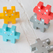 Fun wooden stacking game of different colours. Stack the 12 bunnies in multiple ways. It contains 5 letters of examples printed by the two progressive faces of difficulty. You can play alone or with more children or adults